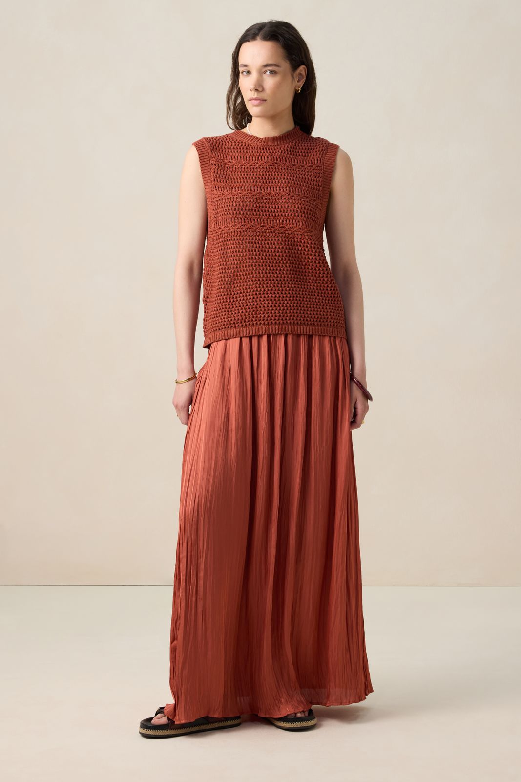 Donkeroranje geplooide maxi rok