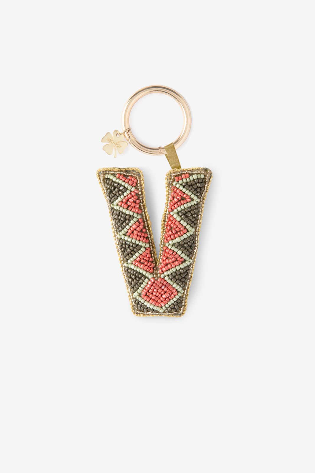 Donkergroene bag charm letter V