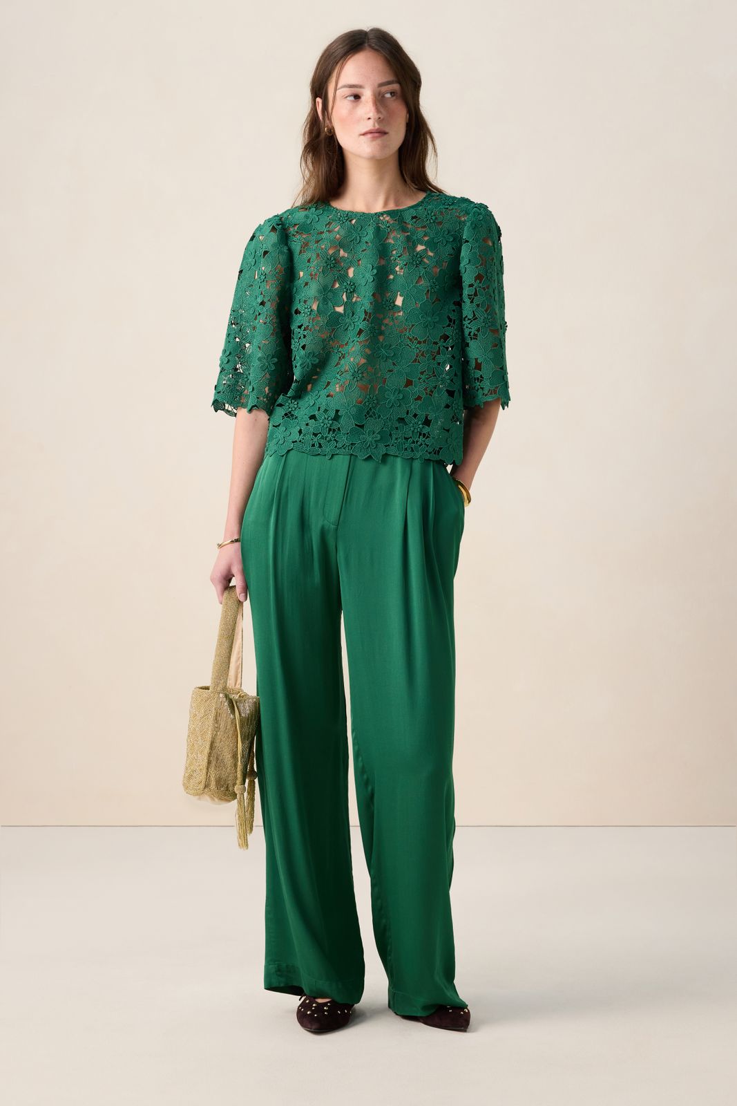 Groene opengewerkte top