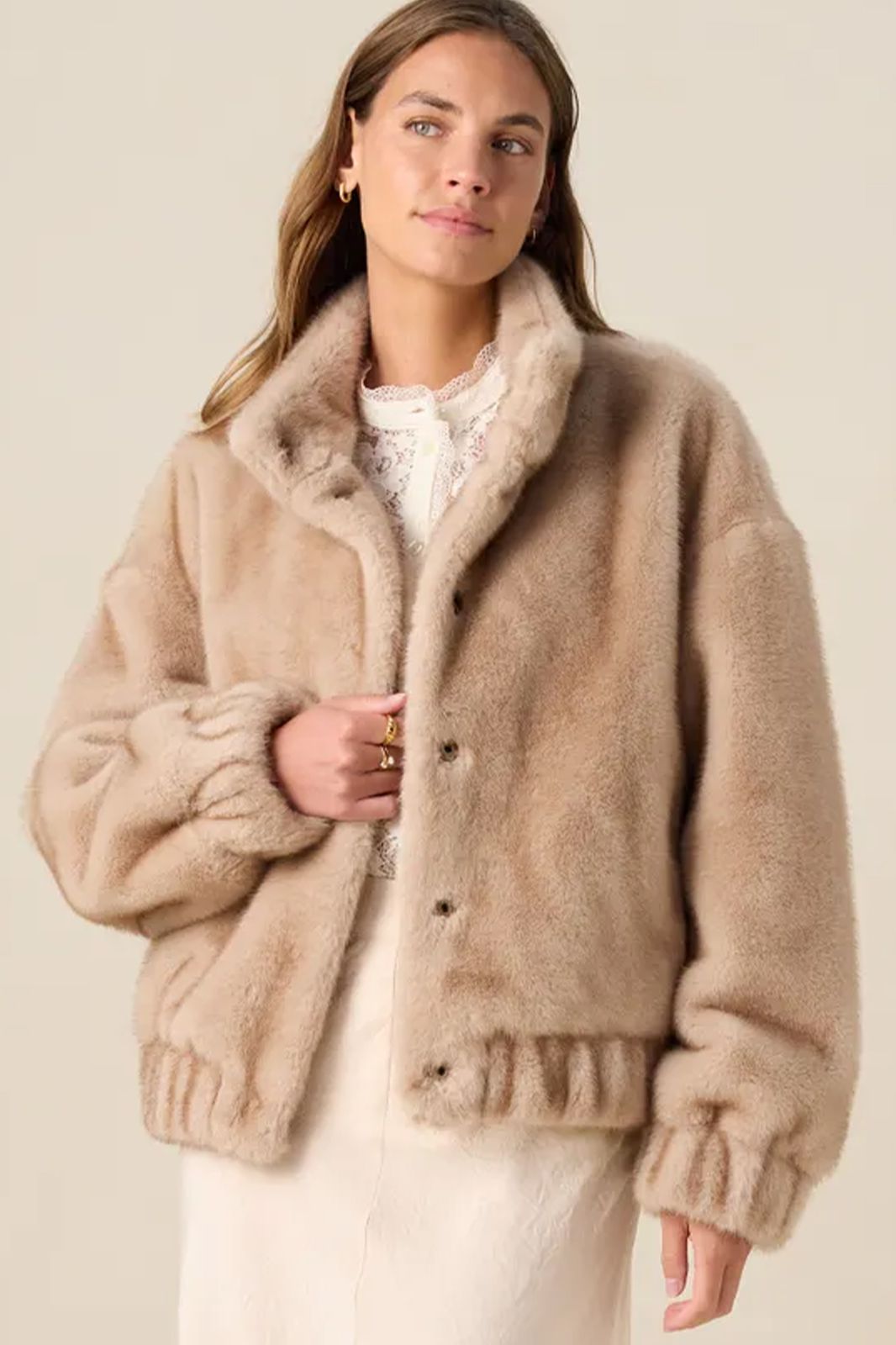 Lichtbruine faux fur jas