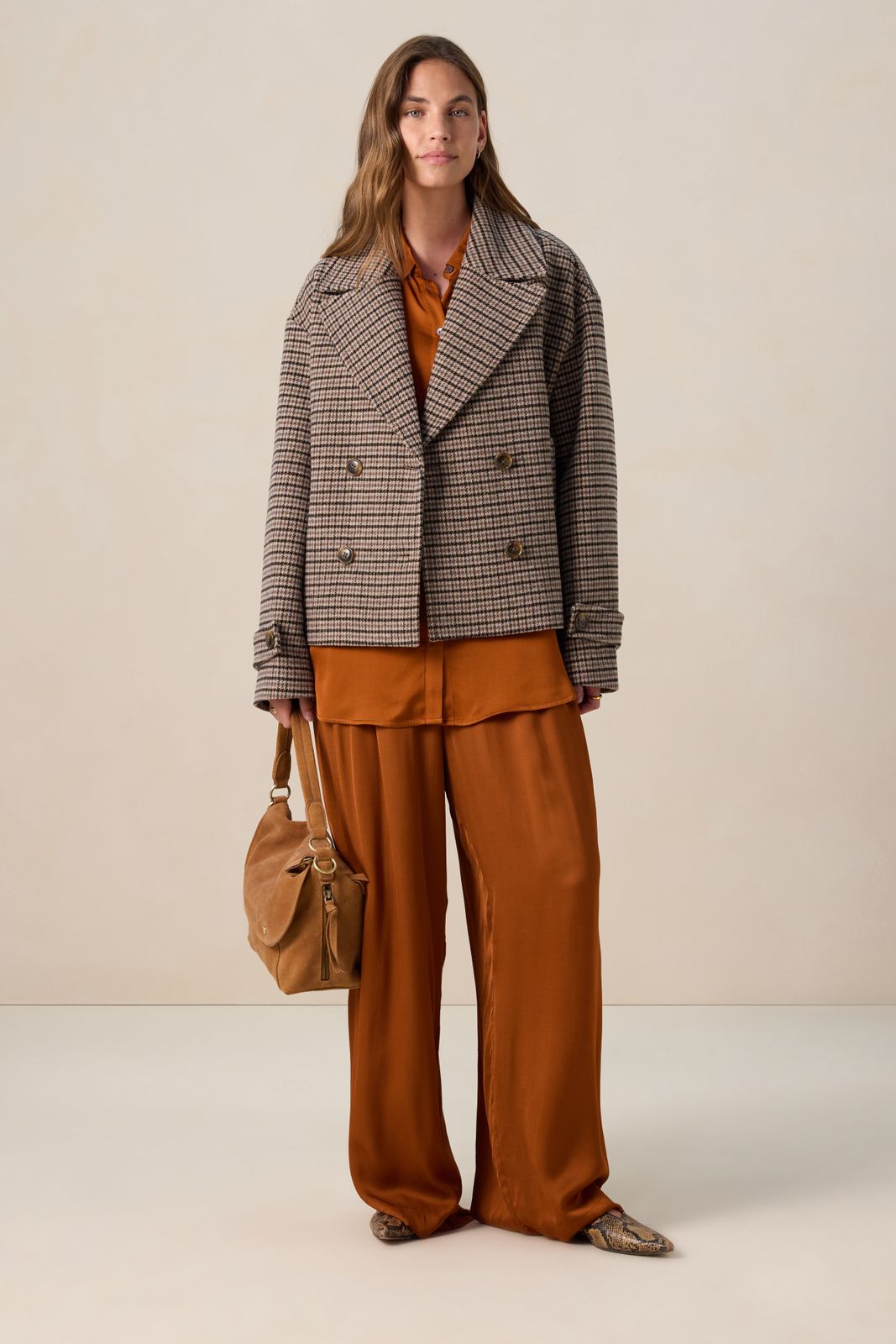 Bruine wollen geruite jas