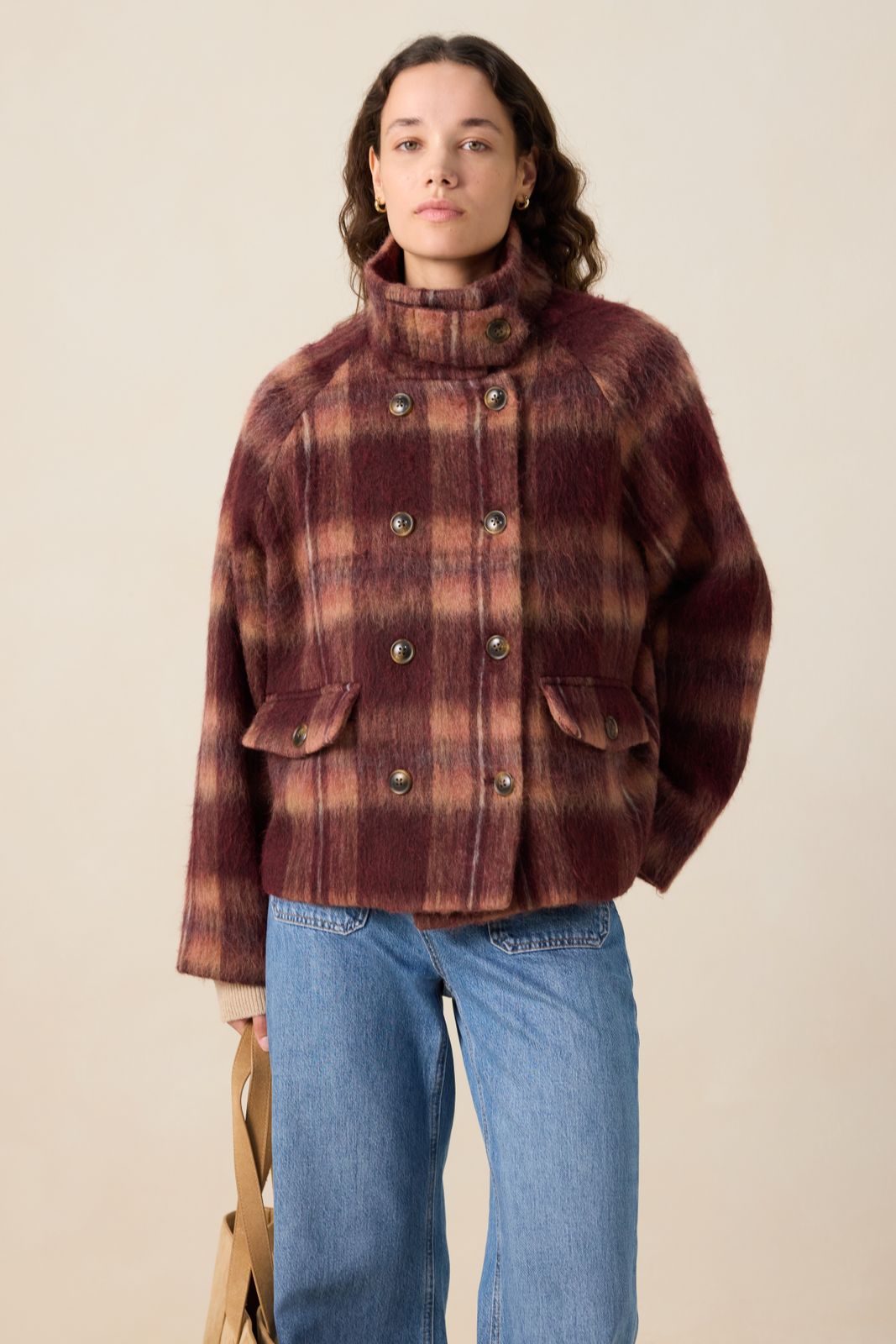 Donkerrode wollen geruite jas