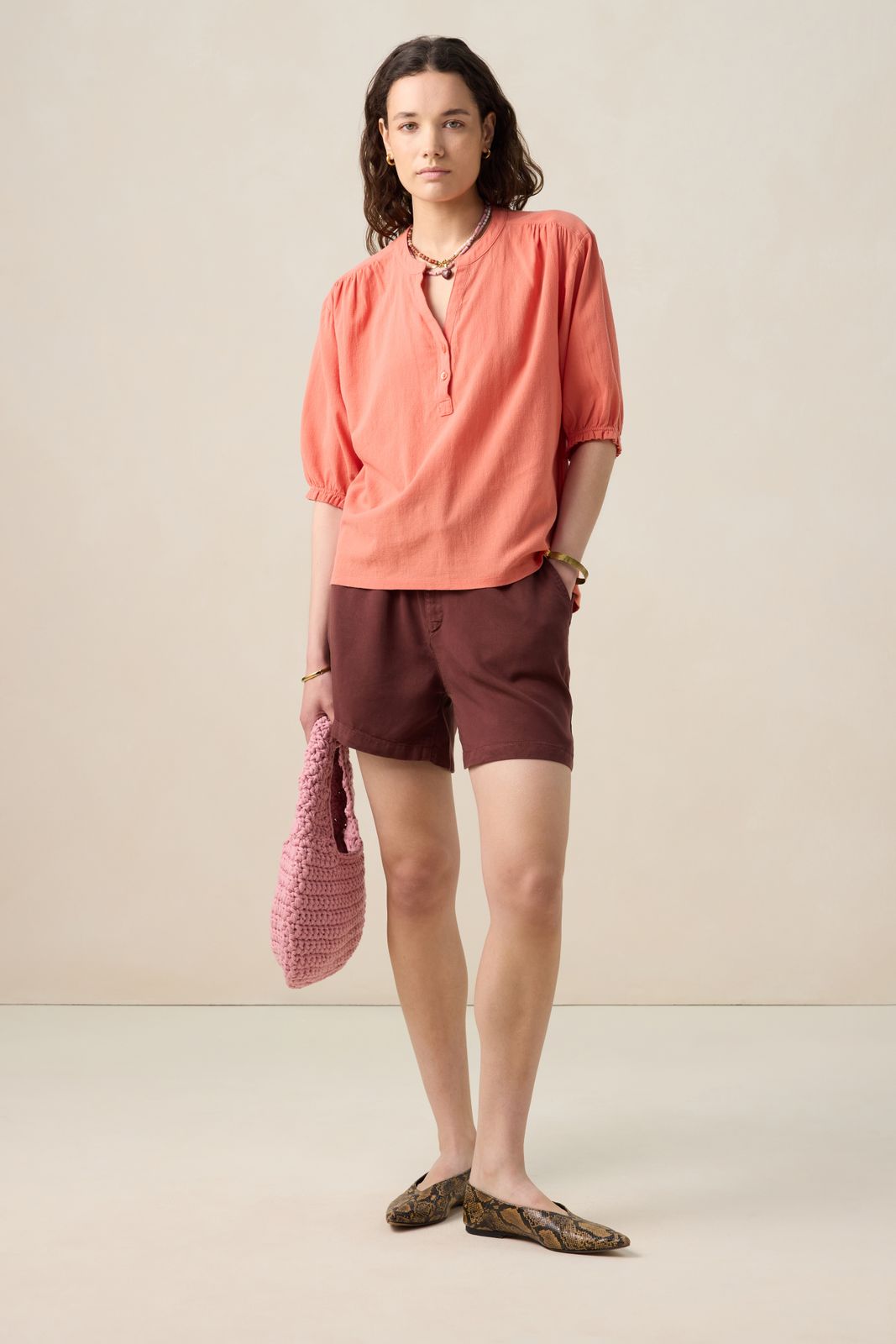 Oranje T-shirt met pofmouwen