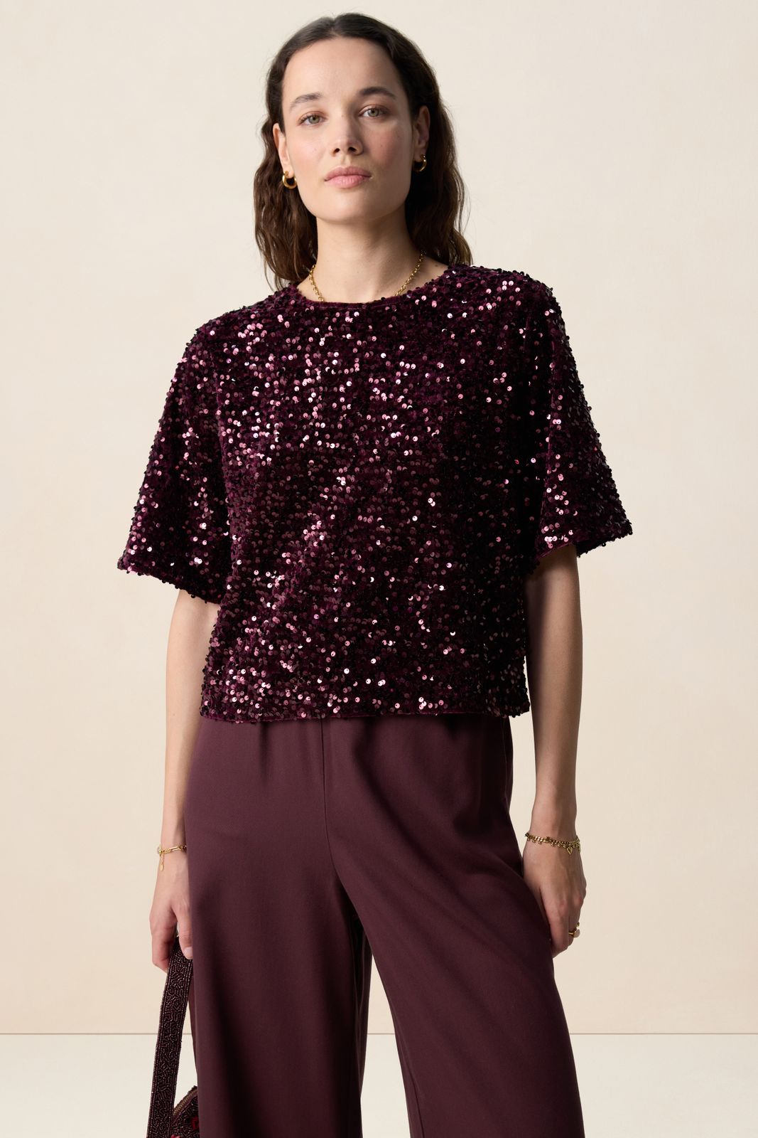 Donkerrood t-shirt met pailletten