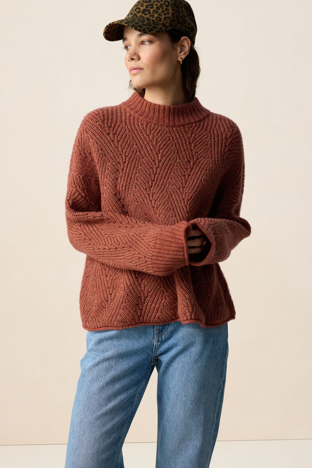 Donkerrode gebreide trui met lurex