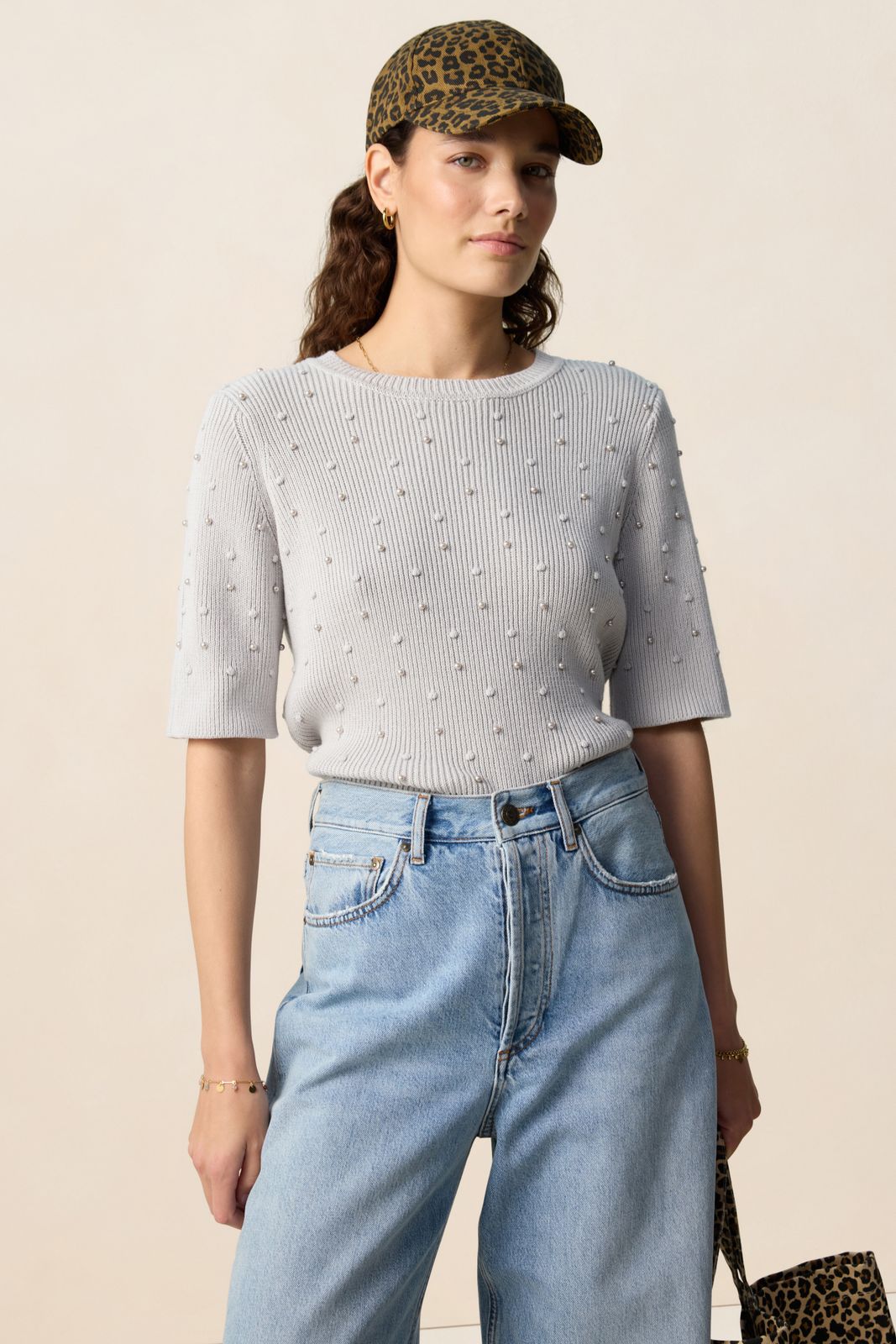 Grijsblauwe trui met parels