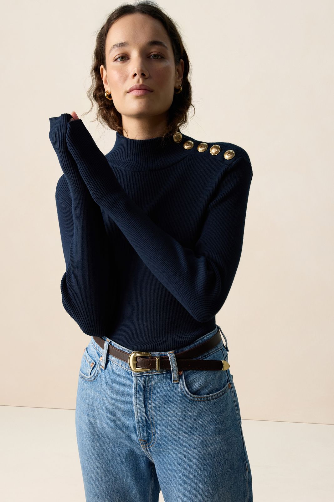Donkerblauwe coltrui met knopen