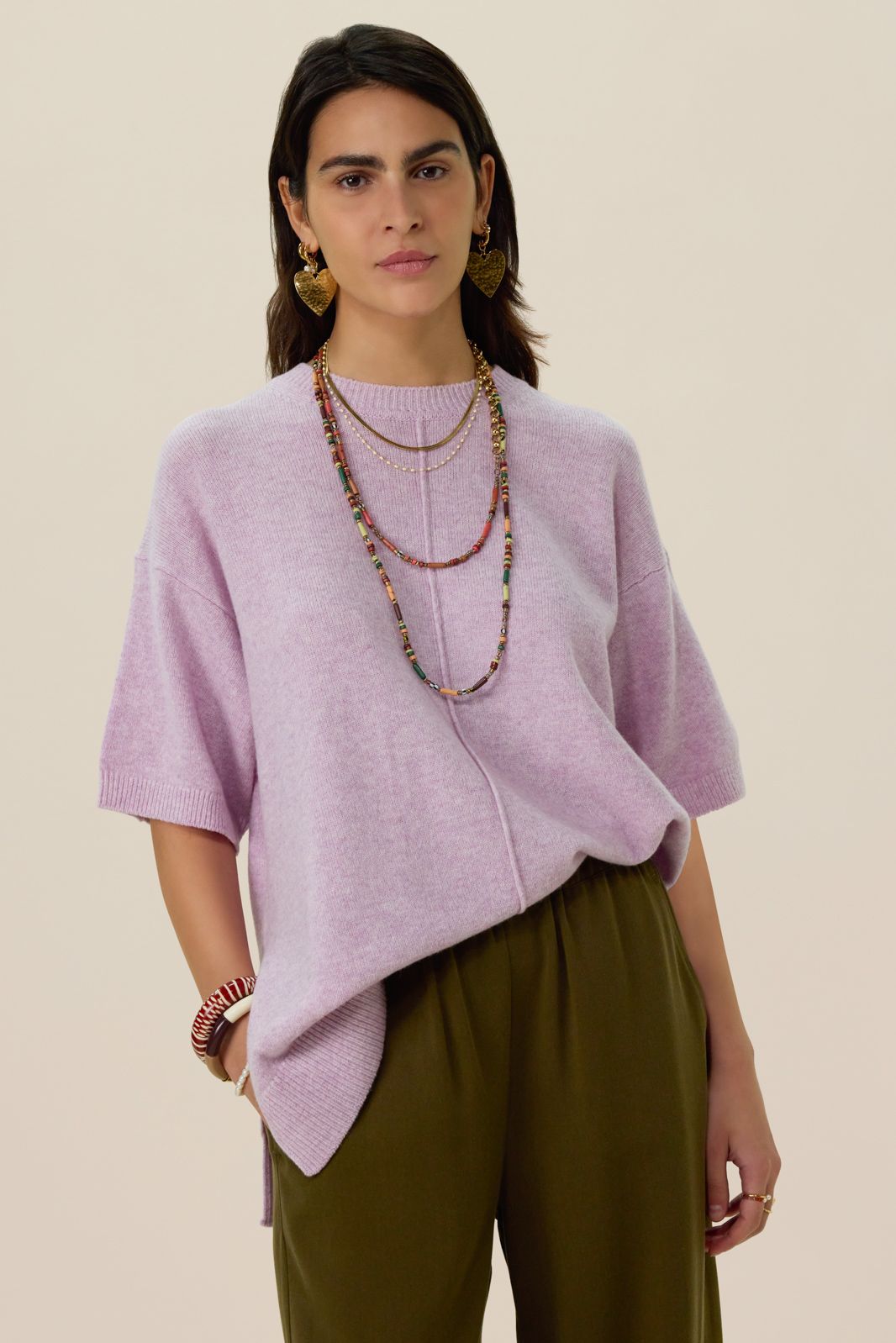 Lila gebreide trui met korte mouwen