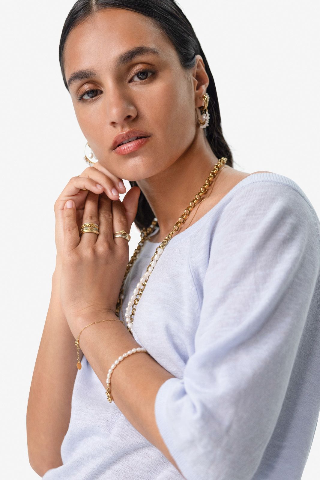 Lichtblauwe trui met knopen