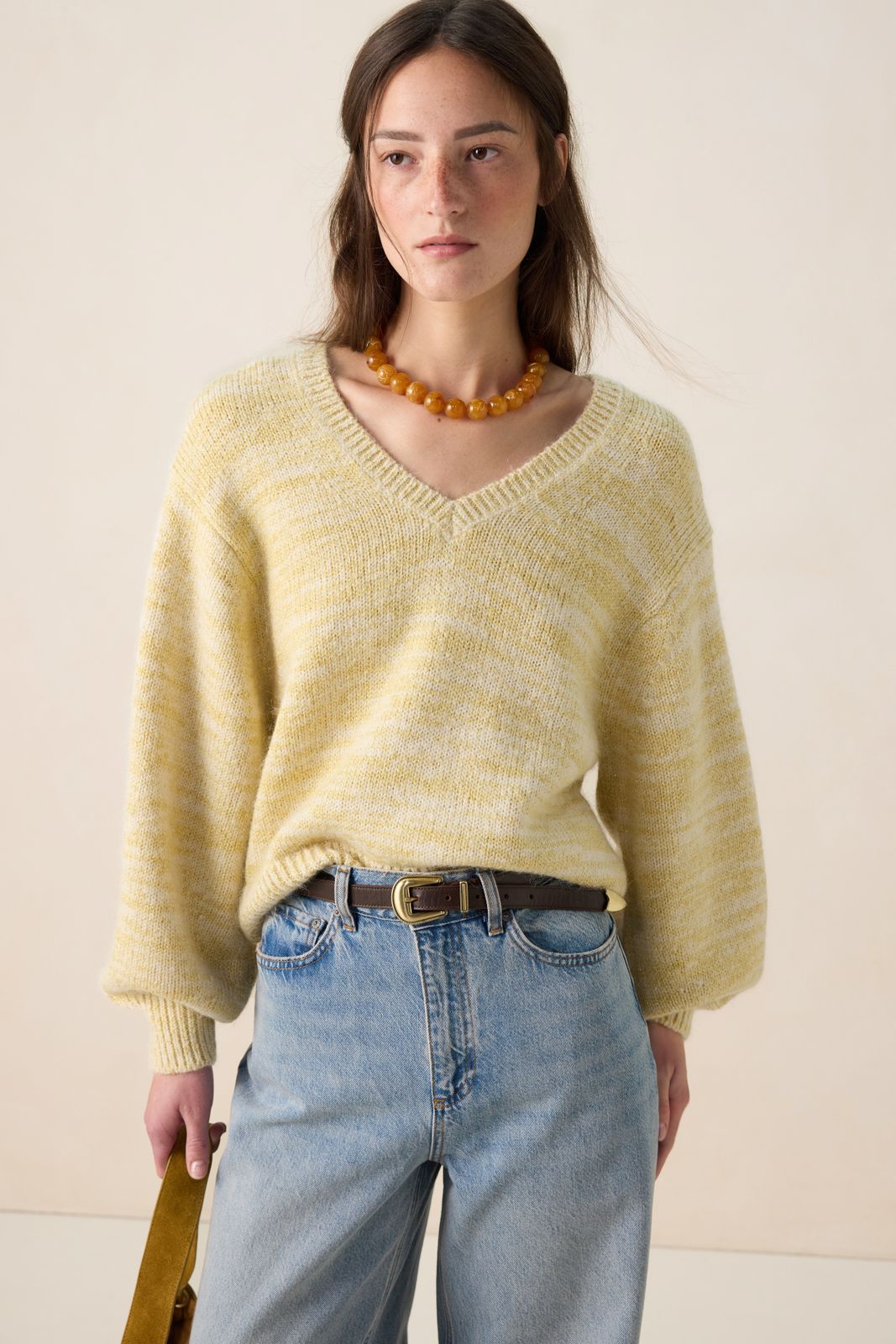 Lichtgele lurex trui met v-hals