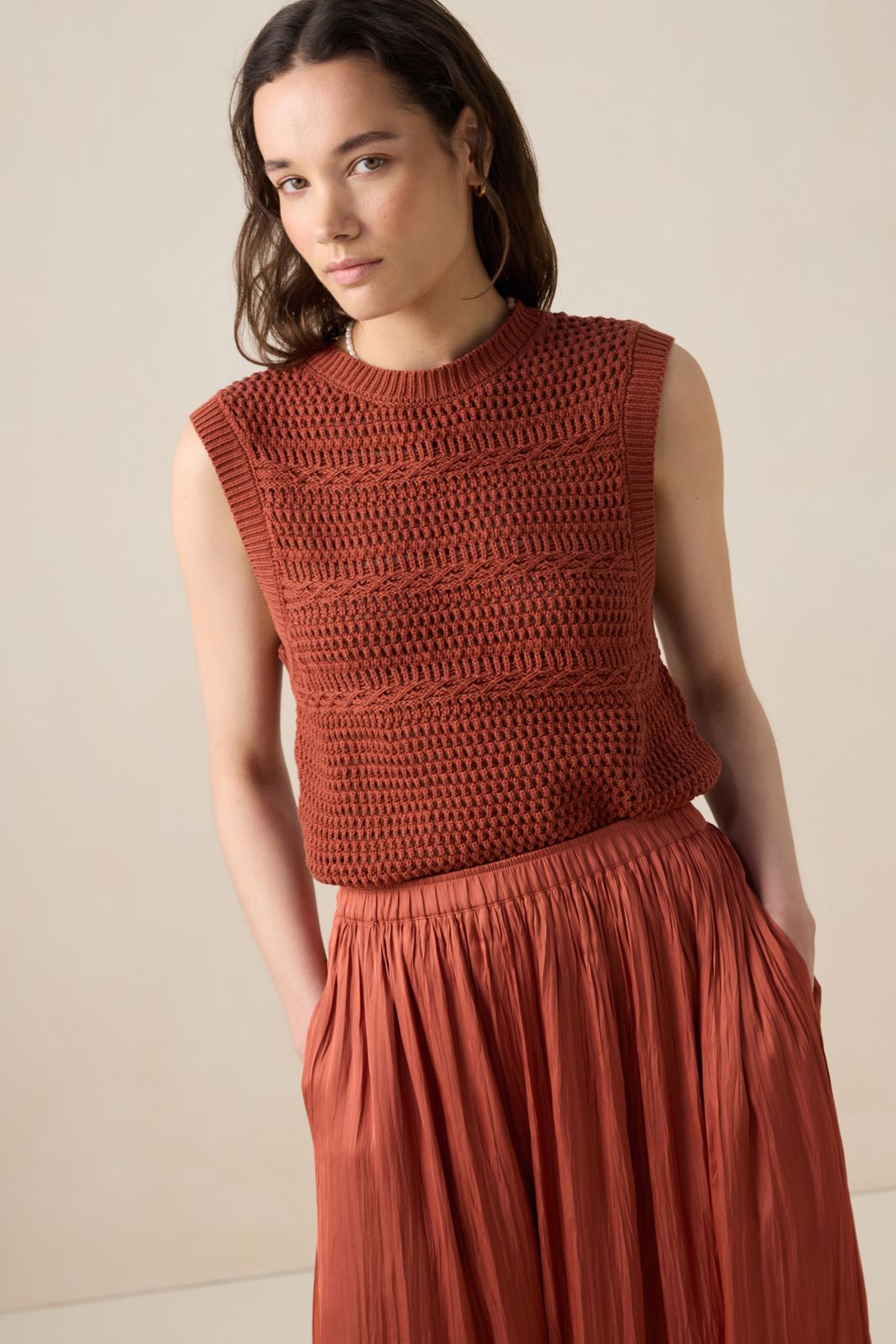 Roodbruine gebreide spencer