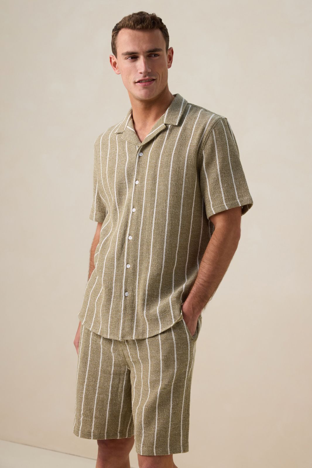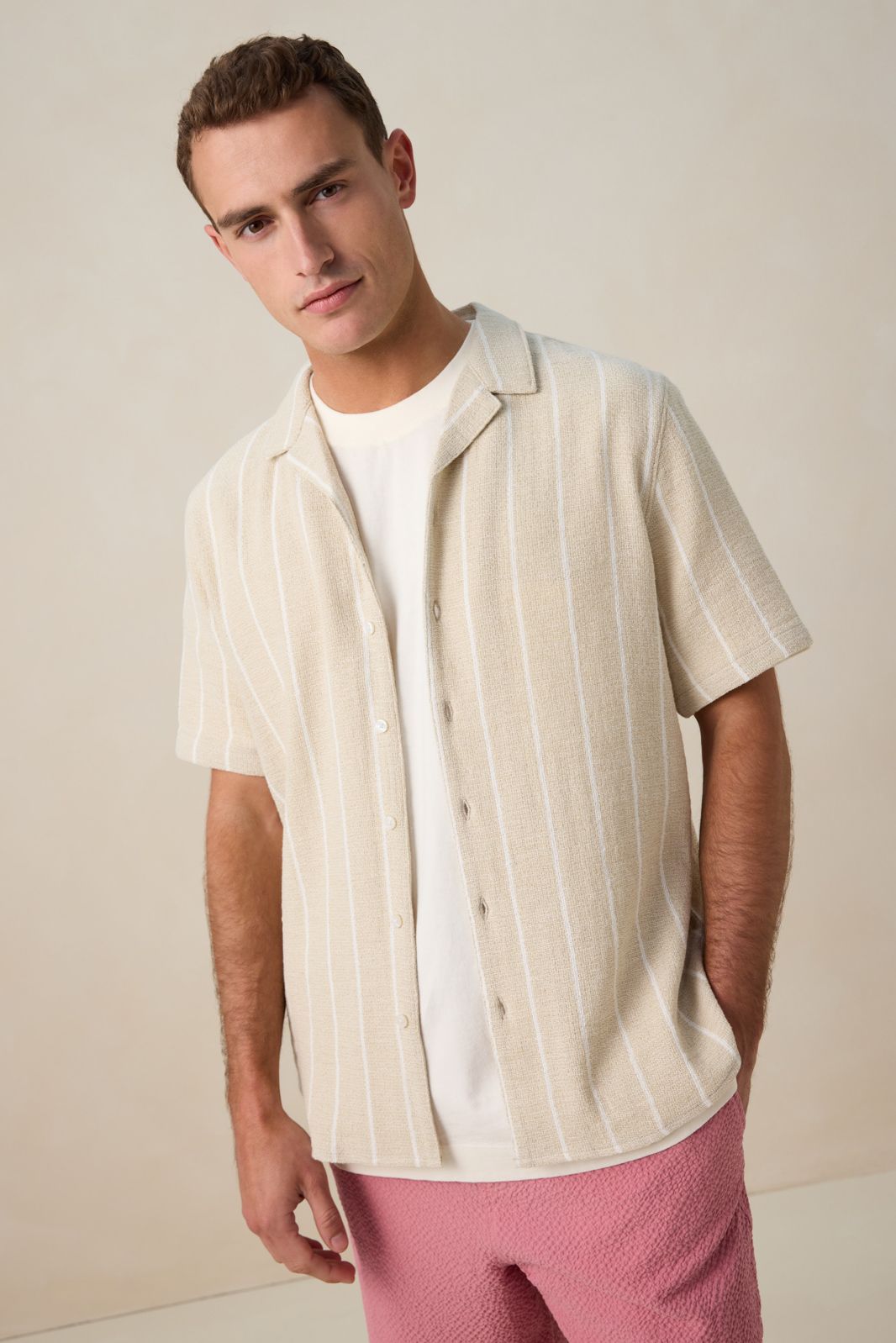 Beige gestreept overhemd