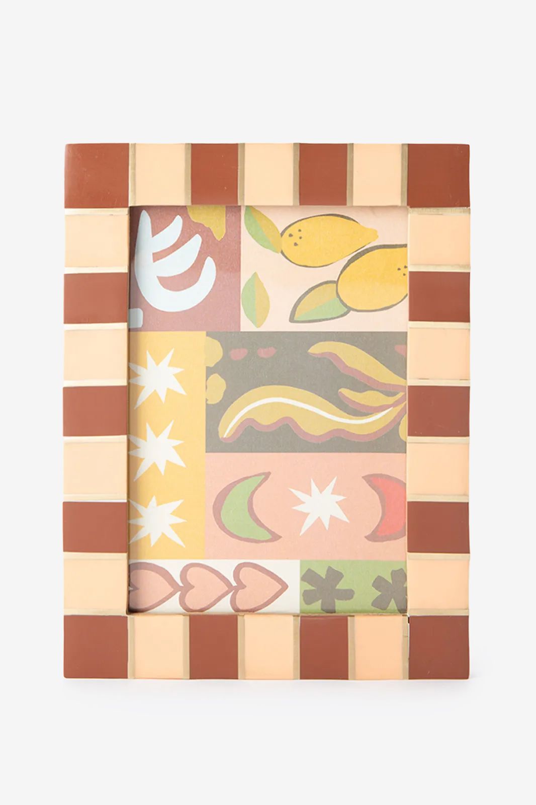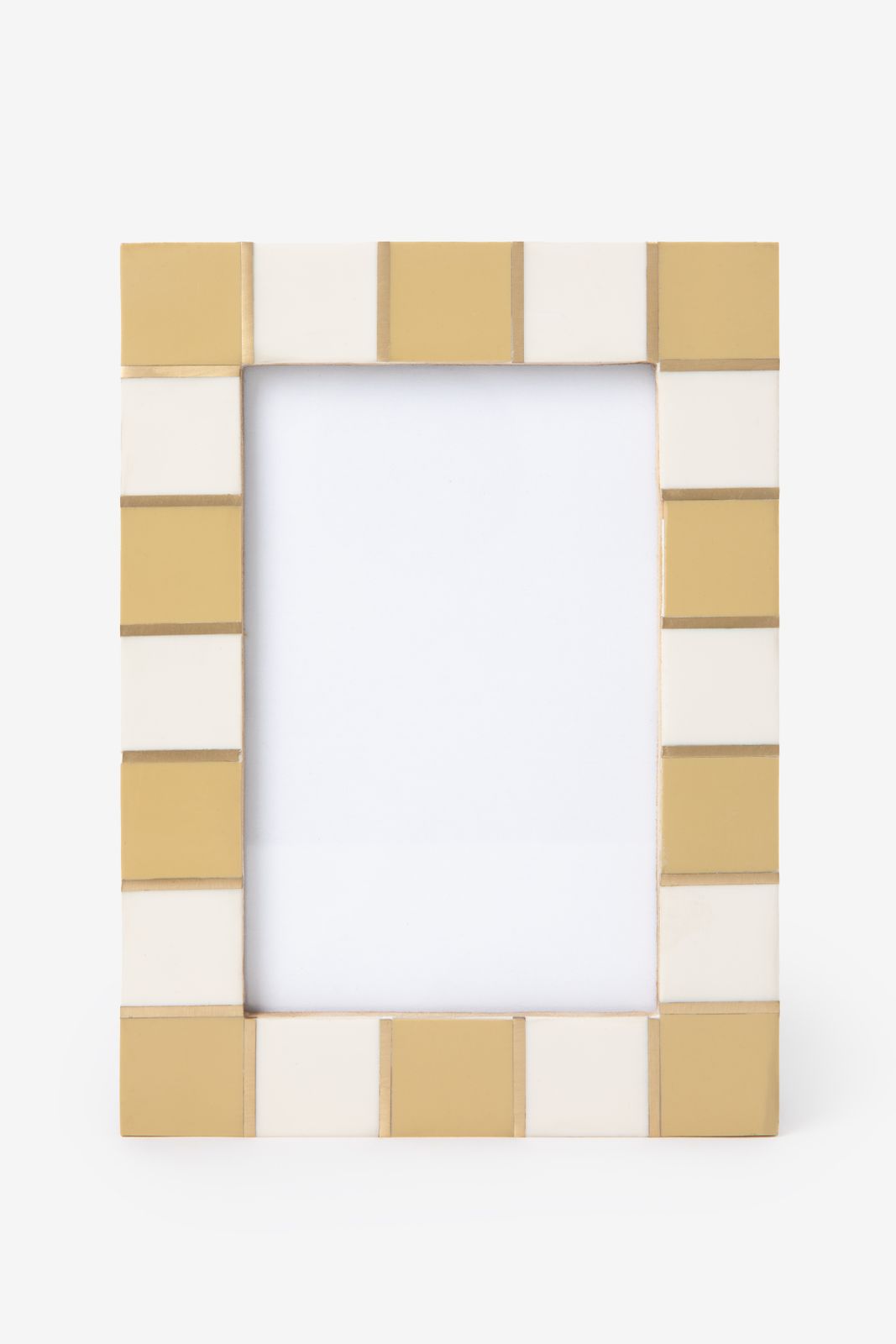 Gele fotolijst met geblokte omlijsting