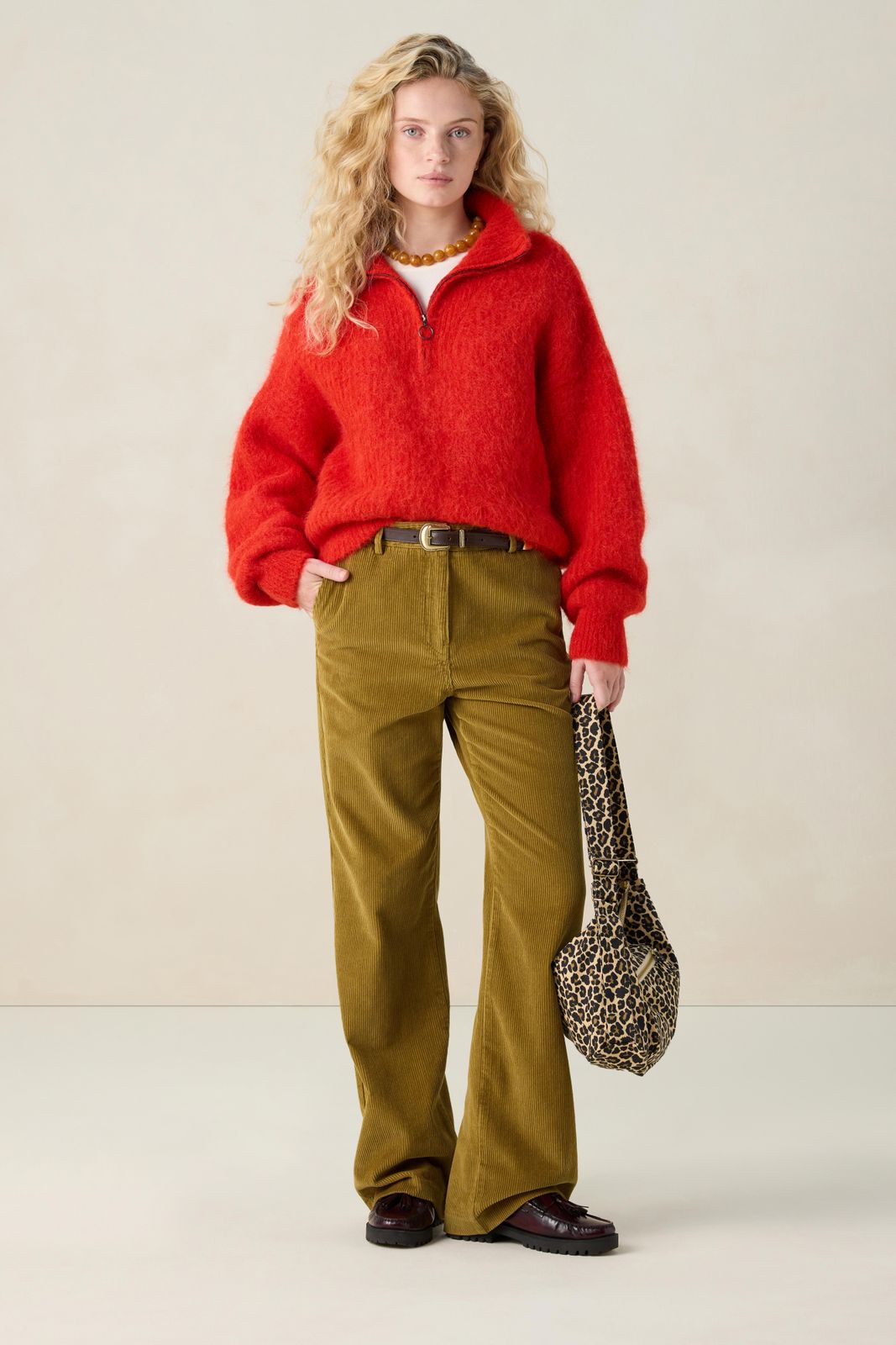 Lichtbruine trui met leopard print