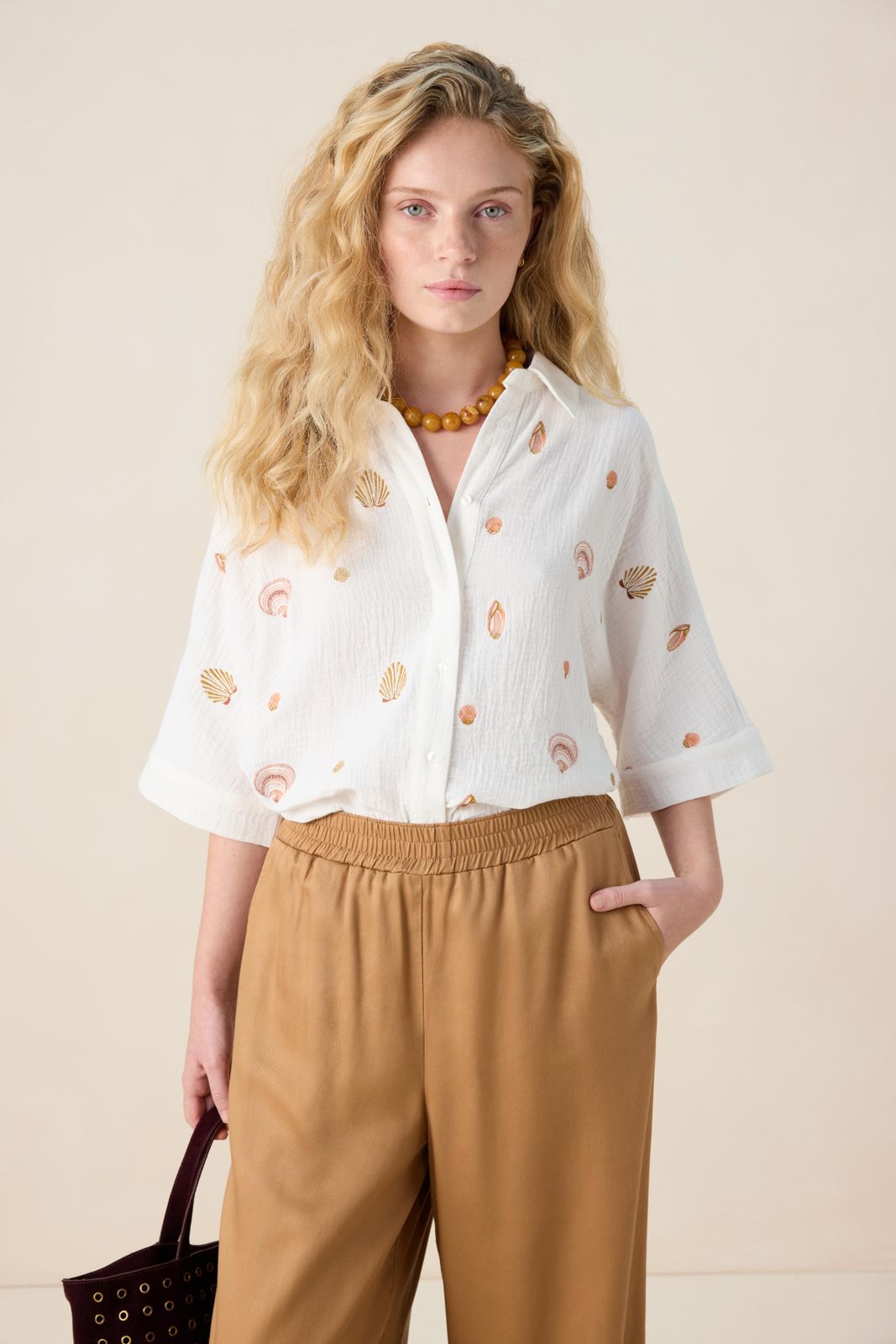 Witte mousseline blouse met embroidery