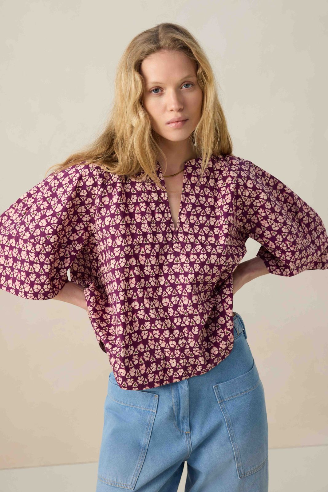 Donkerpaarse top met print