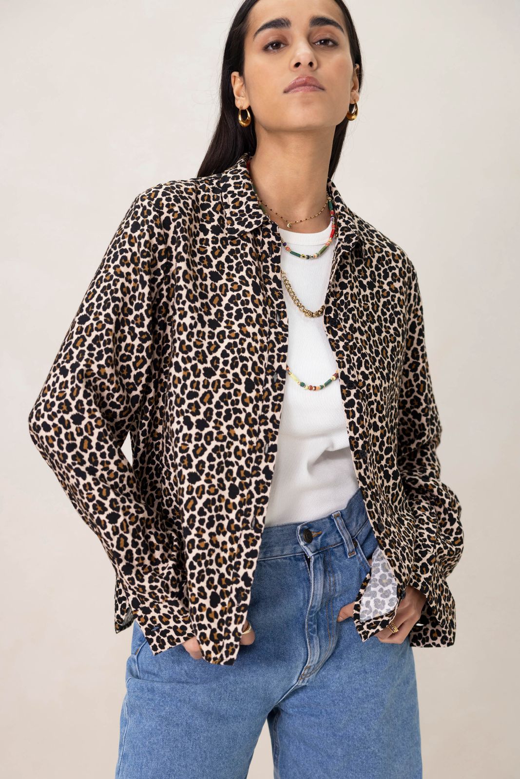 Bruine blouse met leopard print