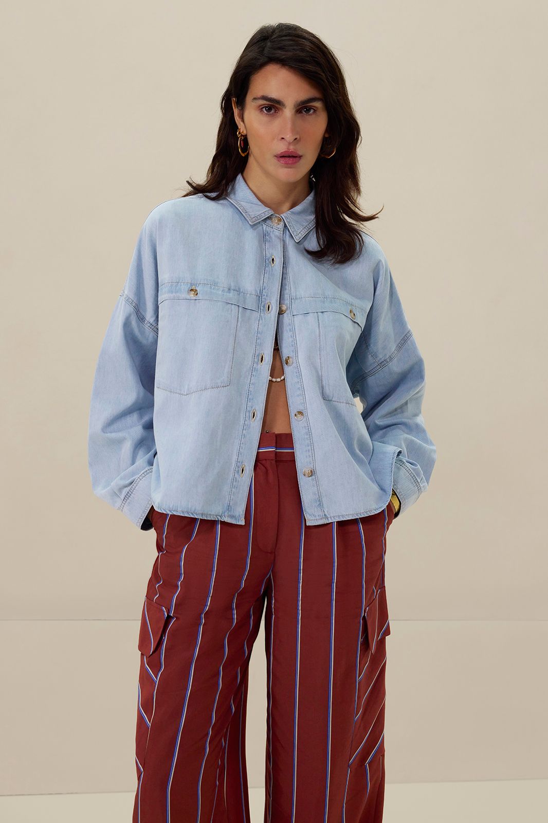 Lichtblauwe cropped denim blouse