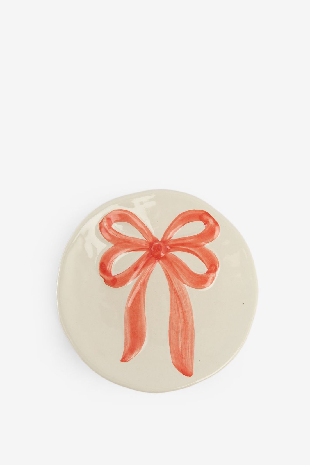Beige dessertbord met roze strik