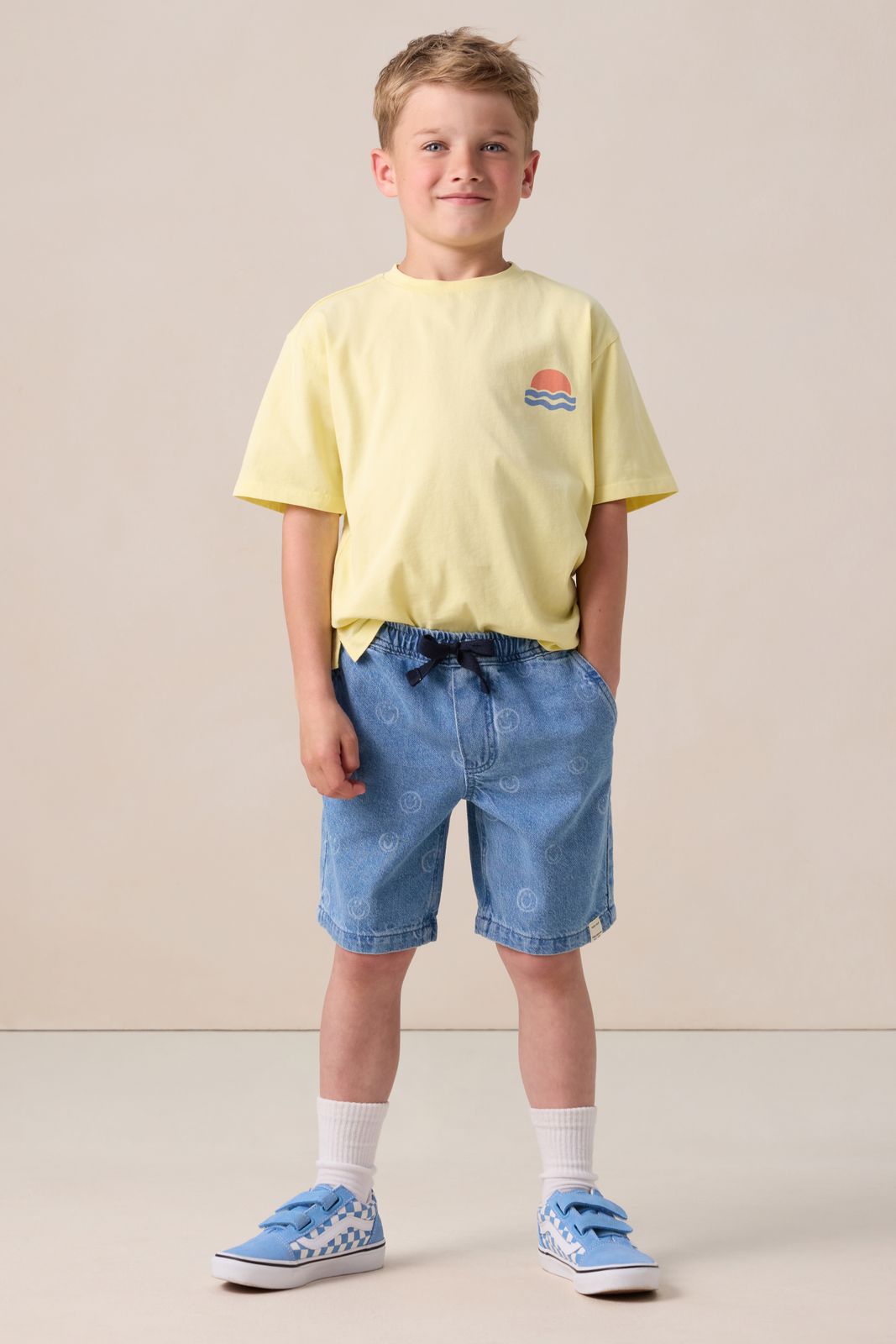Blauwe denim shorts met smiley