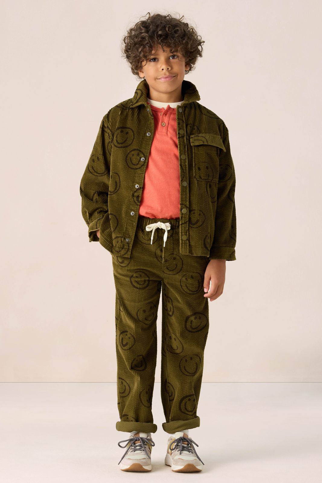Donkergroen corduroy overhemd met smileys