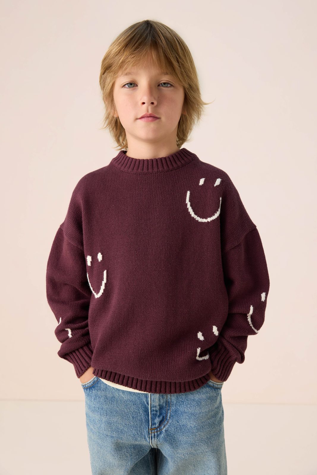 Donkerbruine sweater met smileys