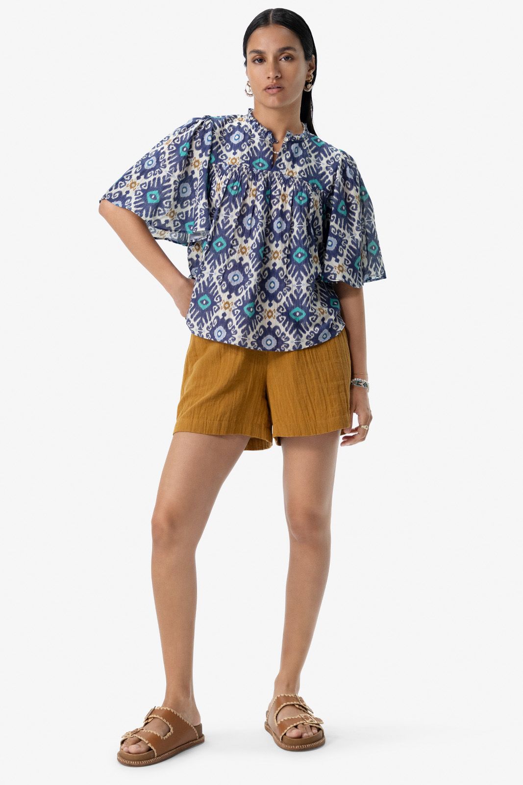 Blauwe A-lijn blouse met print